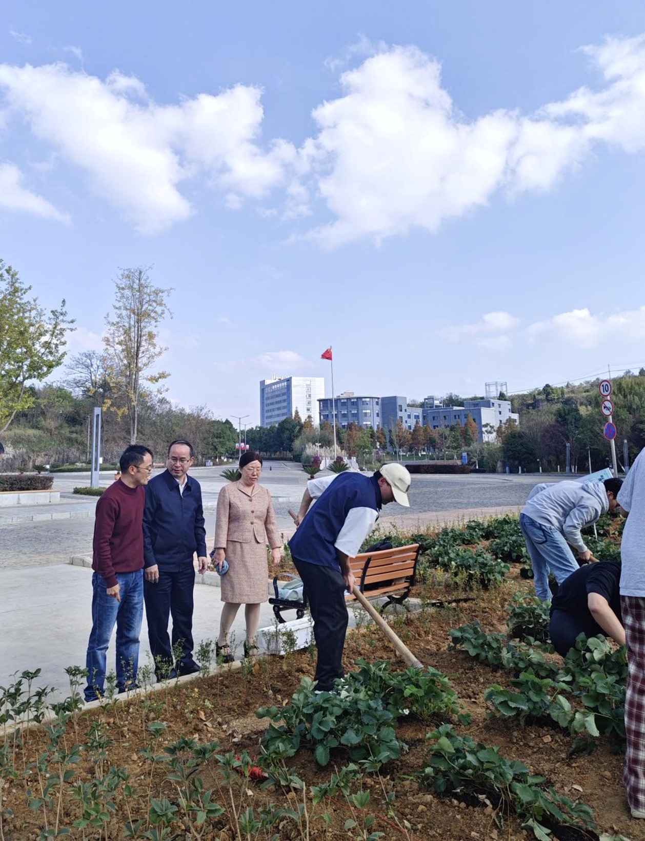 为进一步弘扬农耕文化、践行劳动教育,同时为校园增绿添彩,以更好的姿态迎接即将到来的本科教育教学审核评估。11月15日下午,农学院在安顺市博物馆前开展了一场别开生面的劳动教育活动。华体汇app安卓版下载安装党委书记罗荣彬亲临现场指导,农学院党委书记施渺筱、院长张玉波全程陪同参与,农学院师生党员参加活动。