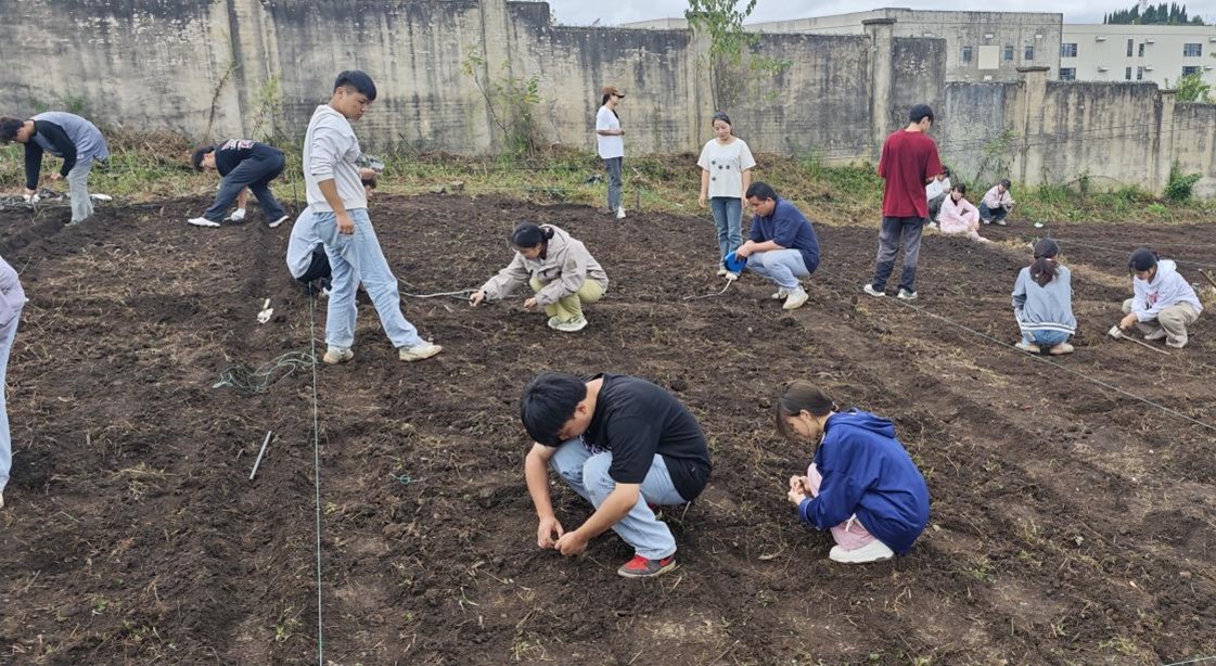 进入整地与播种阶段,重点学习了传统农事中的整地、作畦、开沟等工序,并参与翻耕整地、划分种植小区等实际操作。在此基础上,各组选取当季作物进行集中播种,掌握控制播种深度、行距与密度的关键技术。